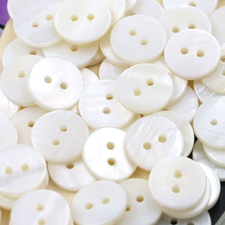 3013 Natural shell shirt suit coat high-end round flat two-eye white button cardigan shirt knitted sweater