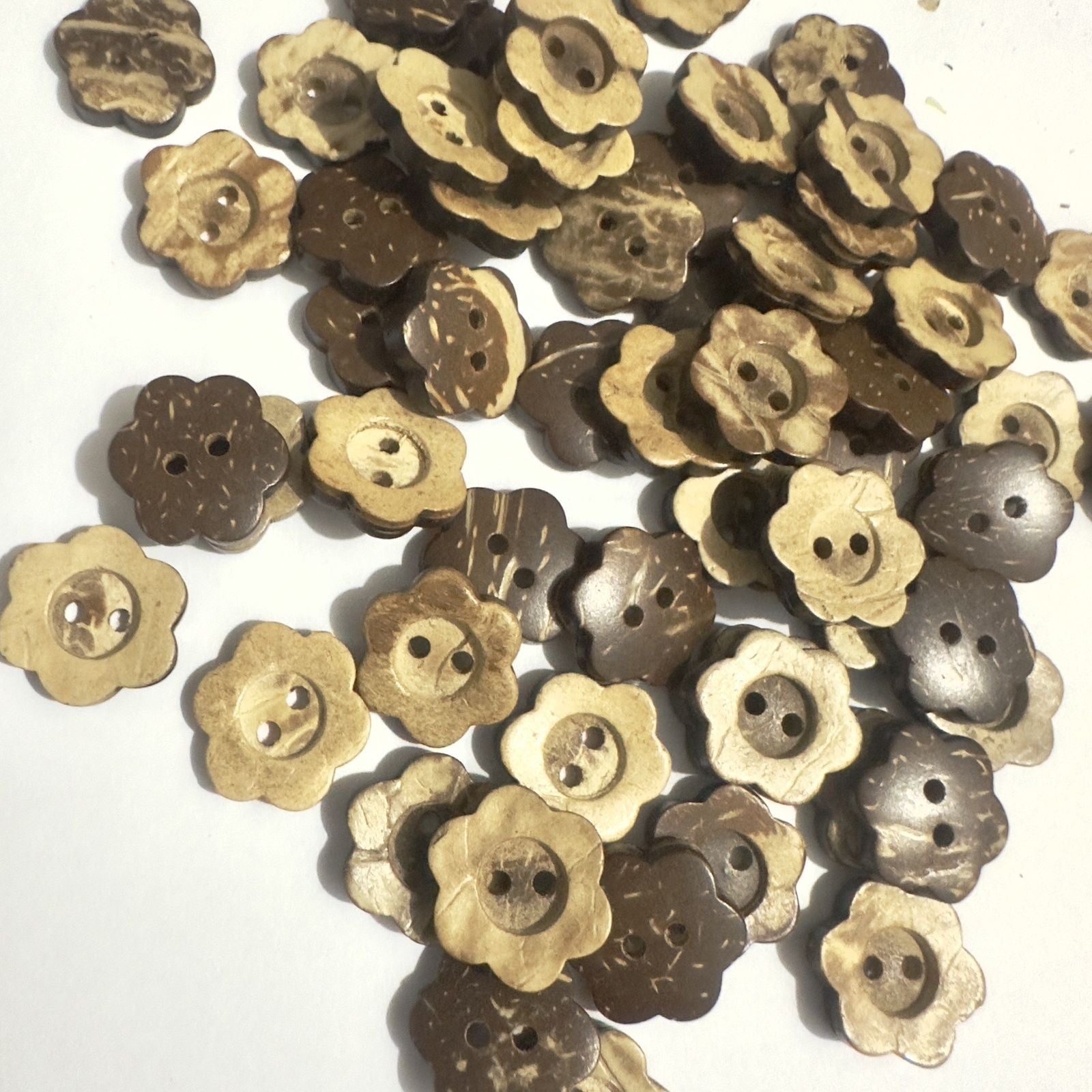 3051 Vintage flower coconut shell wood natural button clothes handmade buttons two-eye shirt children's buttons sweater jacket