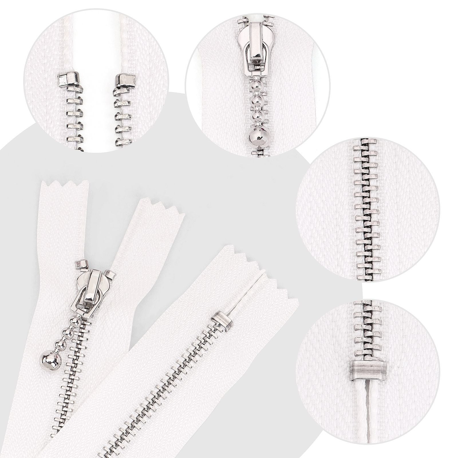 3094 Zipper No. 3 platinum closed tail not tail double small silver circle head double rear size silver circle white cloth silver tooth clothing bag DIY use