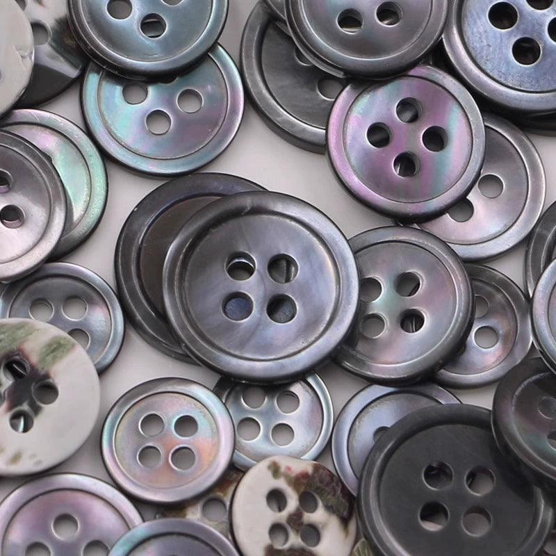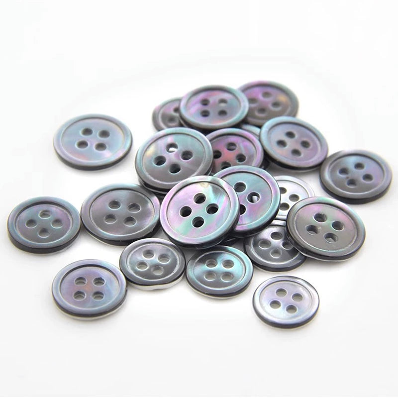 3350★ Shell Button Four Eyes Thin Edge Conch Men's and Women's Versatile Shirt Cardigan Small Button Children's Clothes Sweater Gray Black