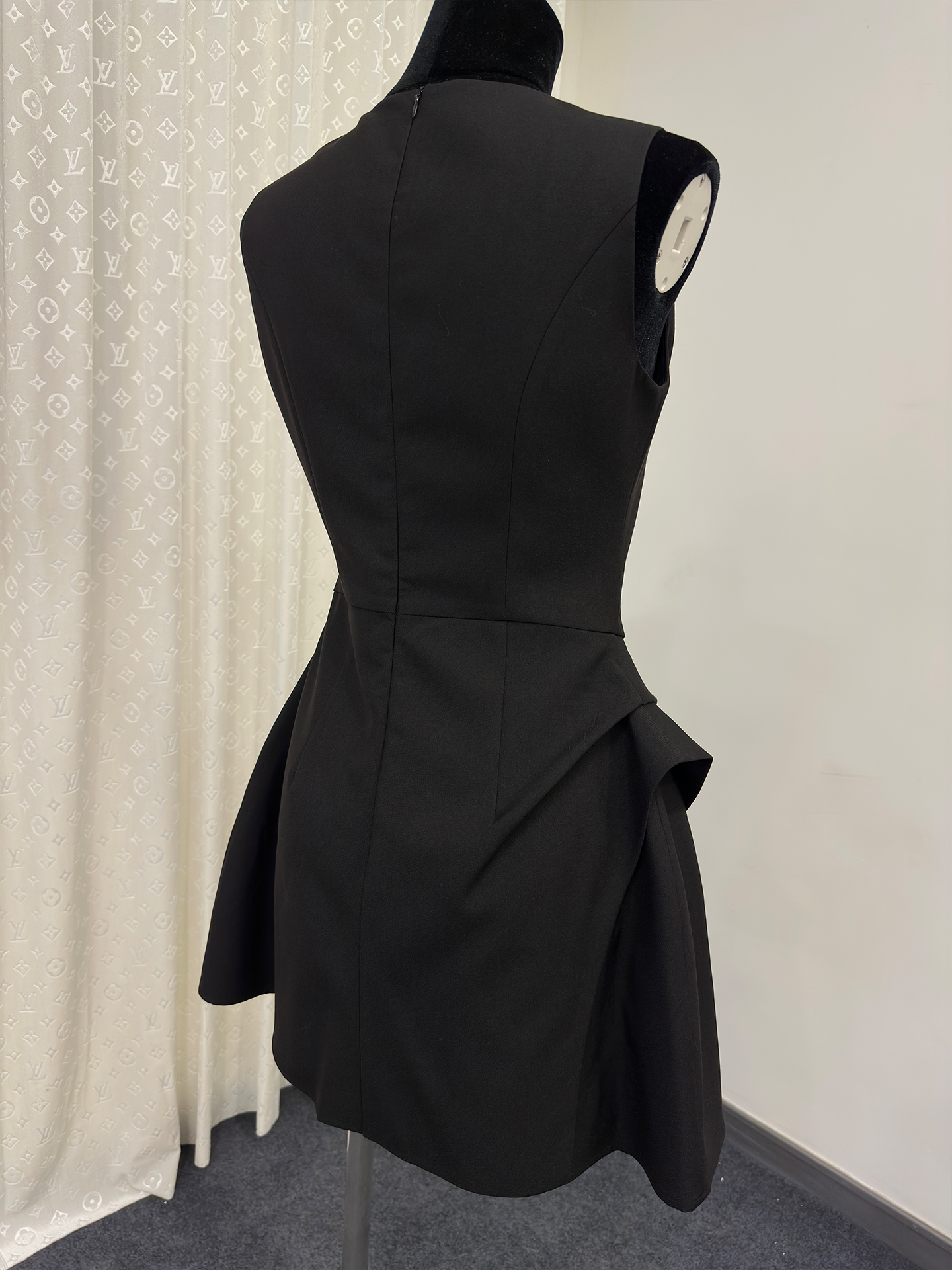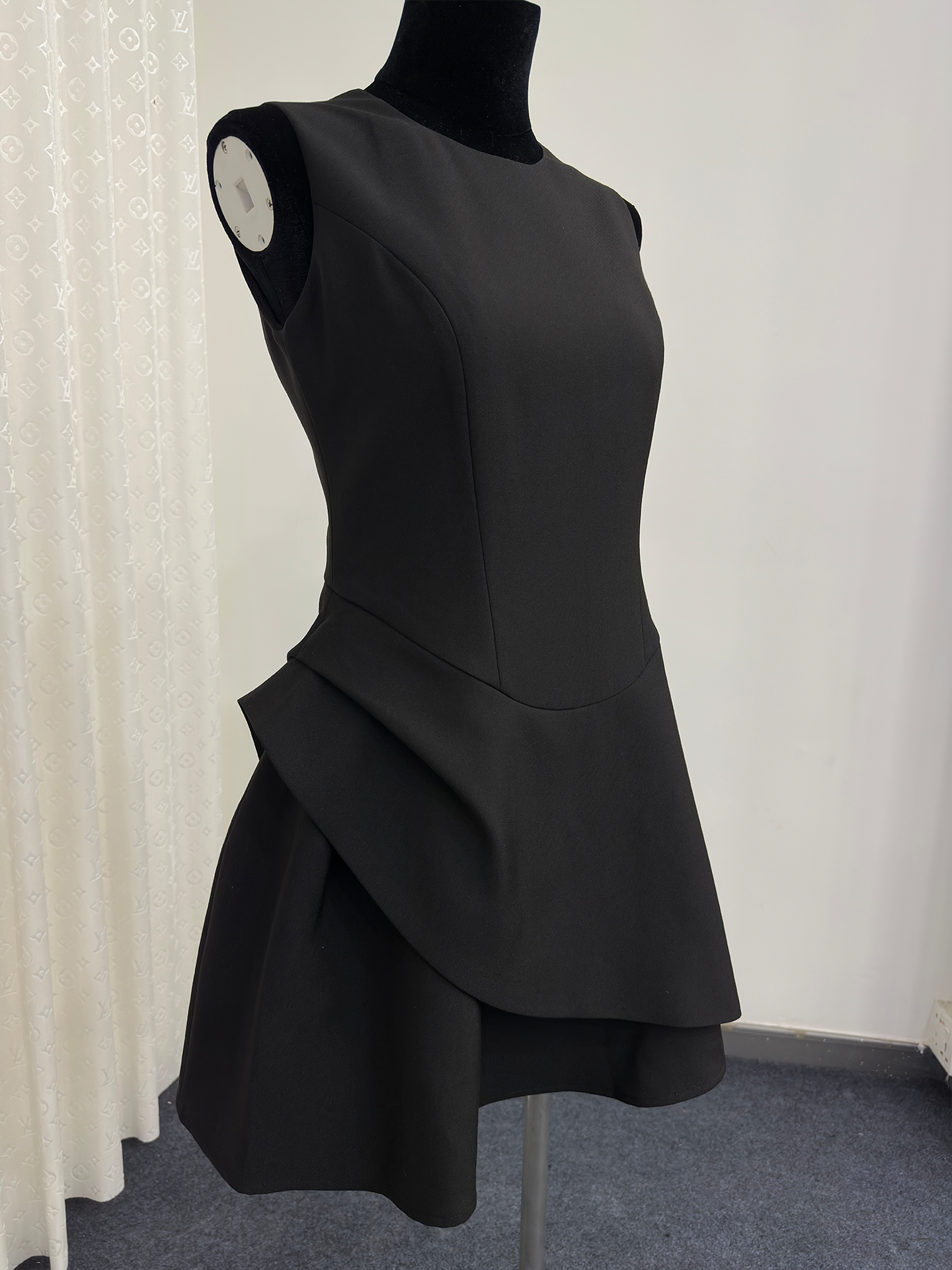 8012★ New irregular cutting rich family daughter wind miu dress small fragrant wind waist sleeveless vest skirt