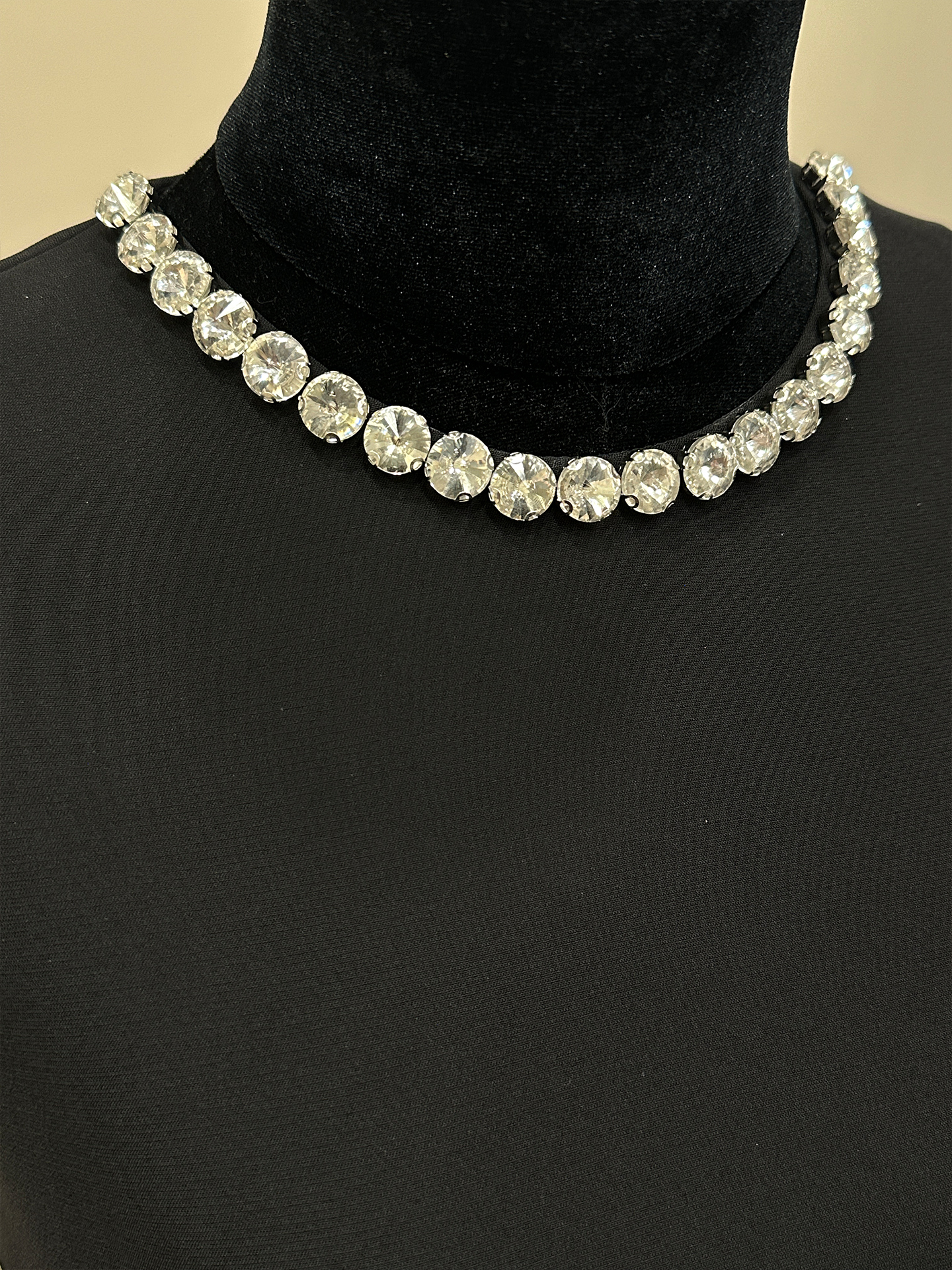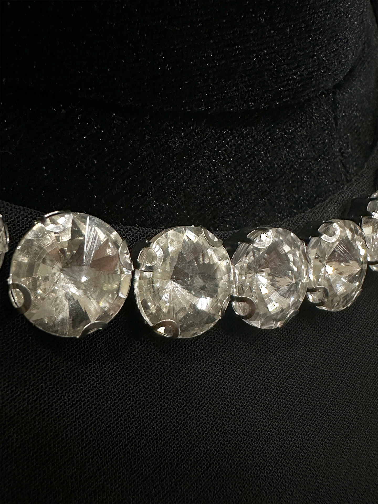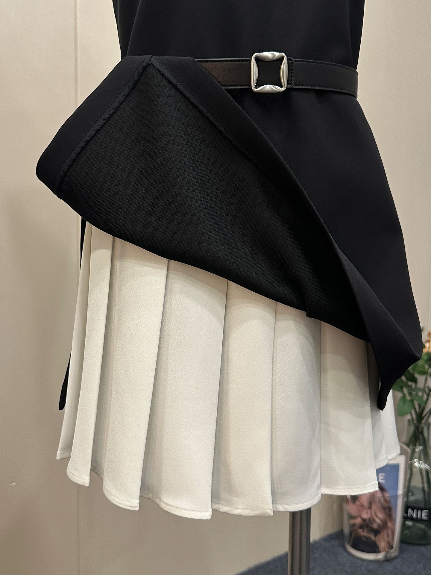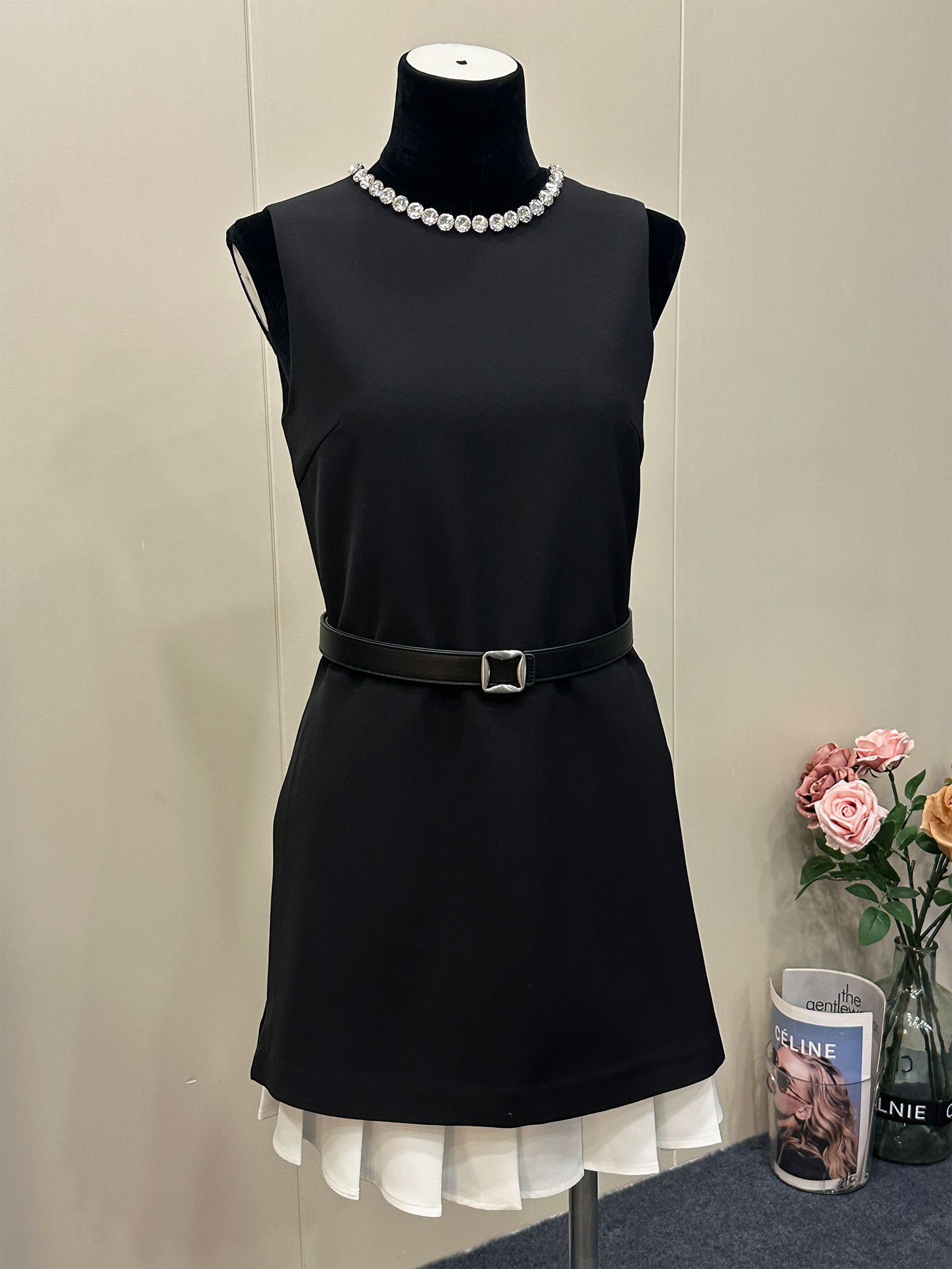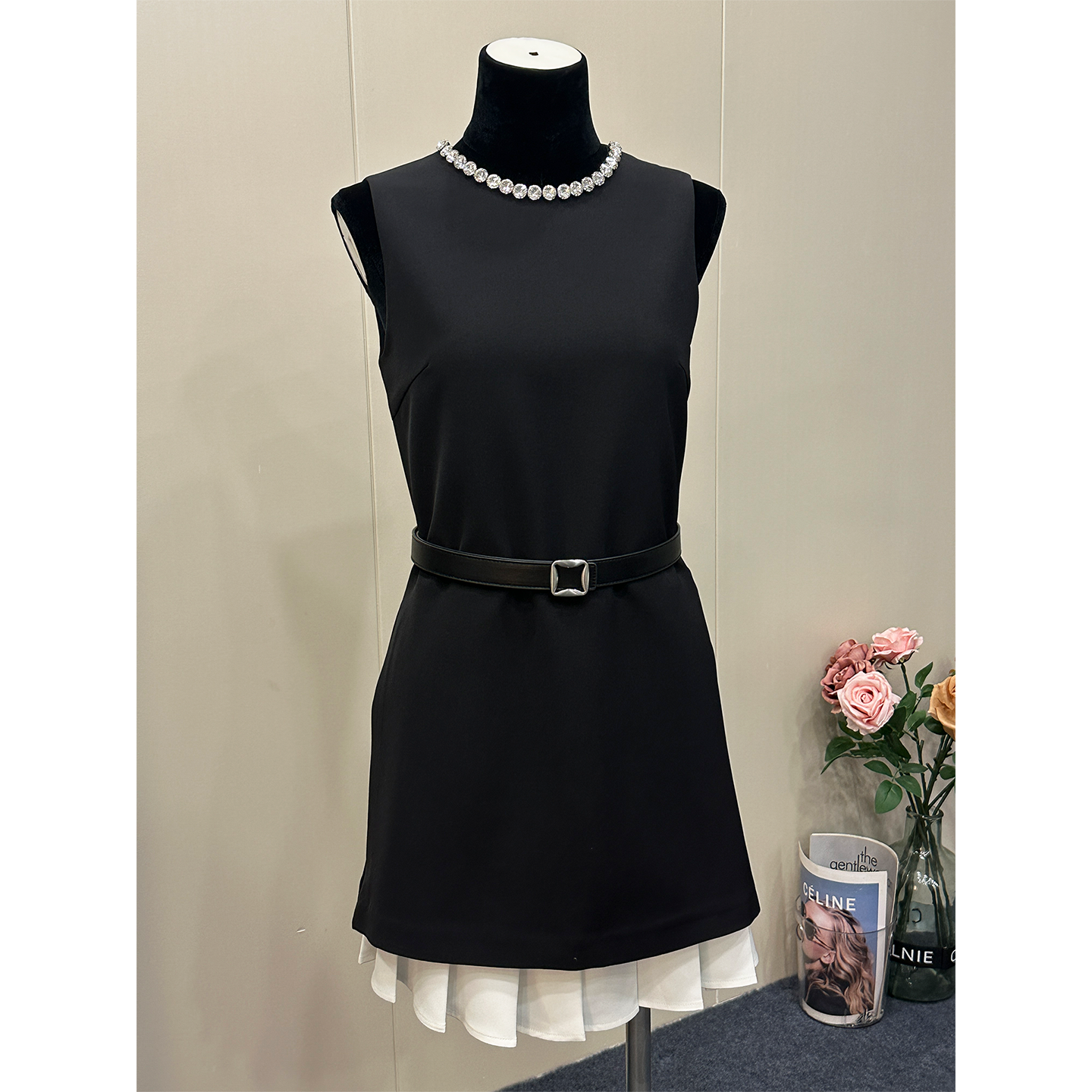 8020★ Thousand blond hair small black dress neckline fixed diamond fake two-piece splicing pleated skirt French high-end dress