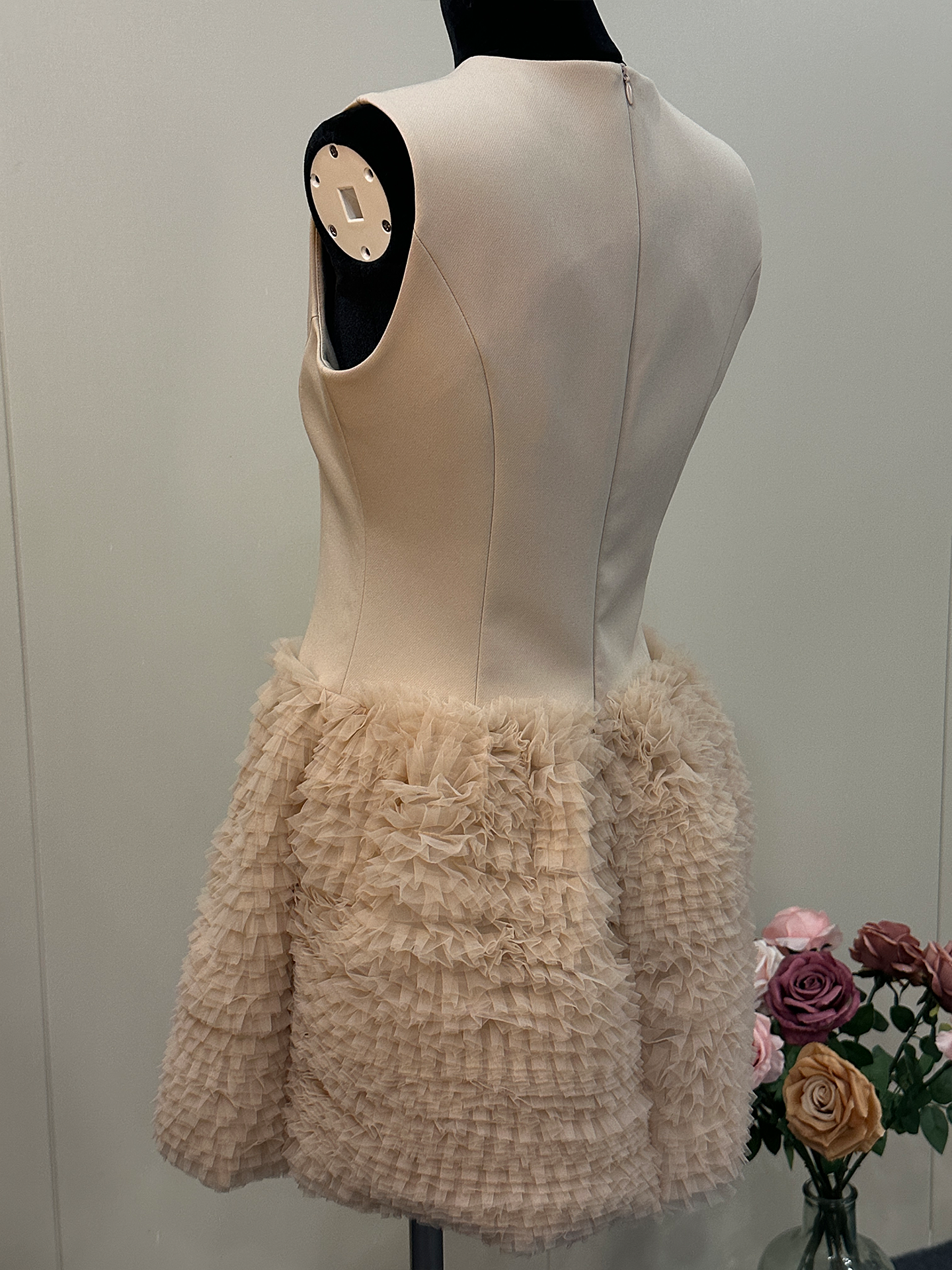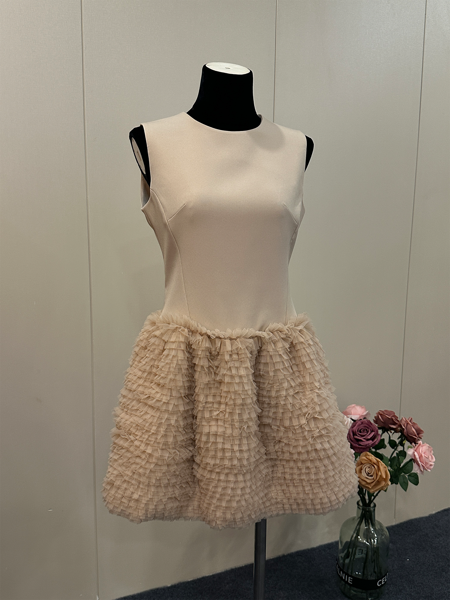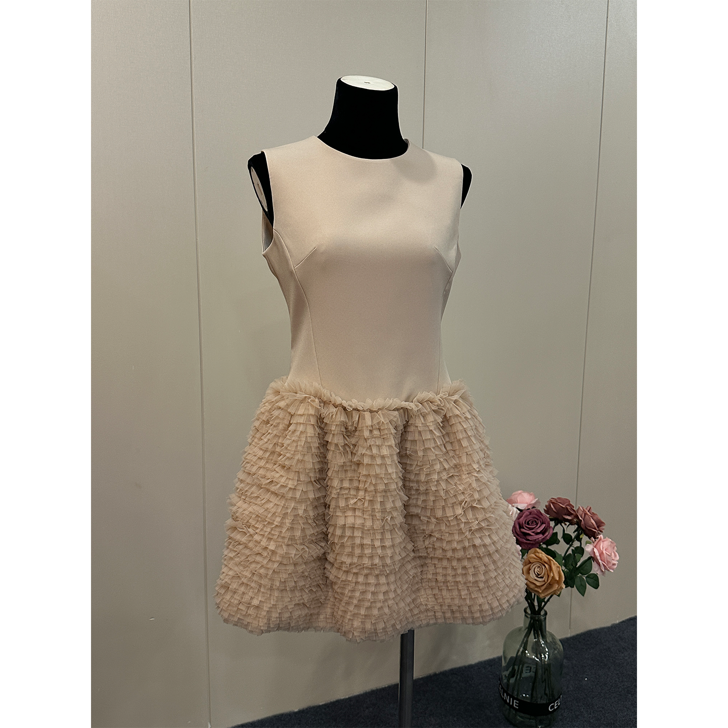 8021★ noble and gentle daughter style dress for women 25 summer thin heavy industry splicing cake skirt