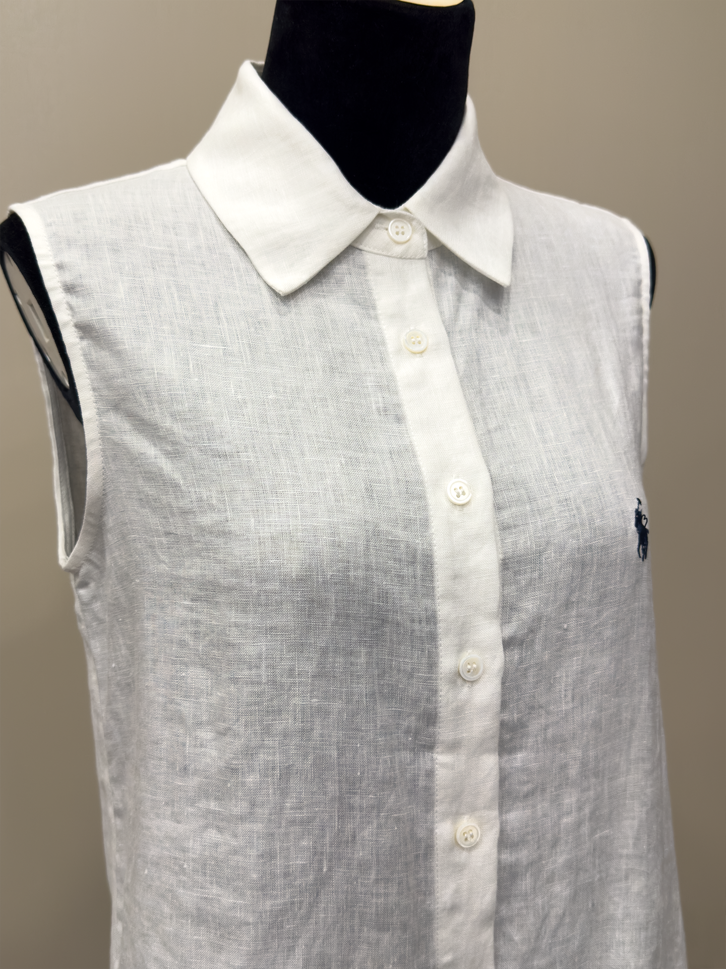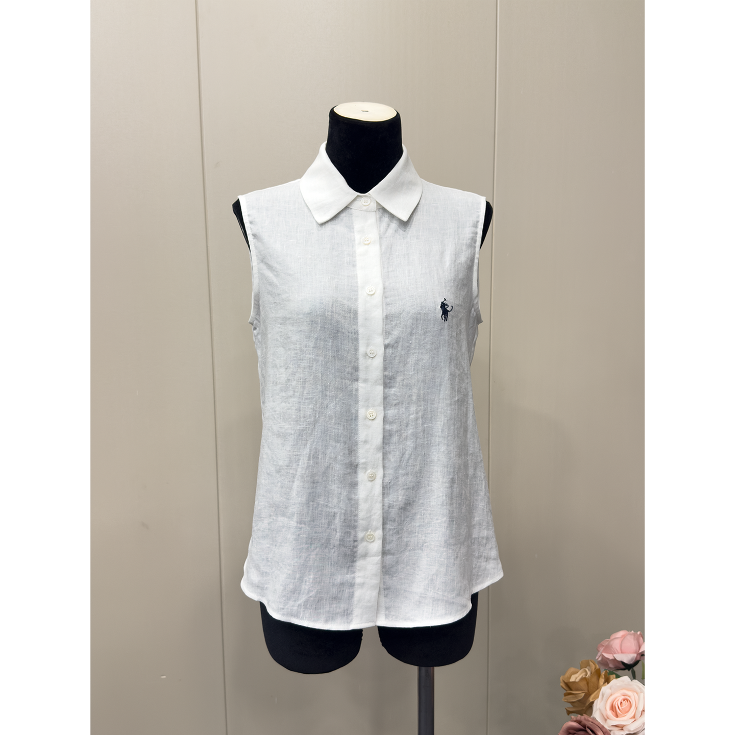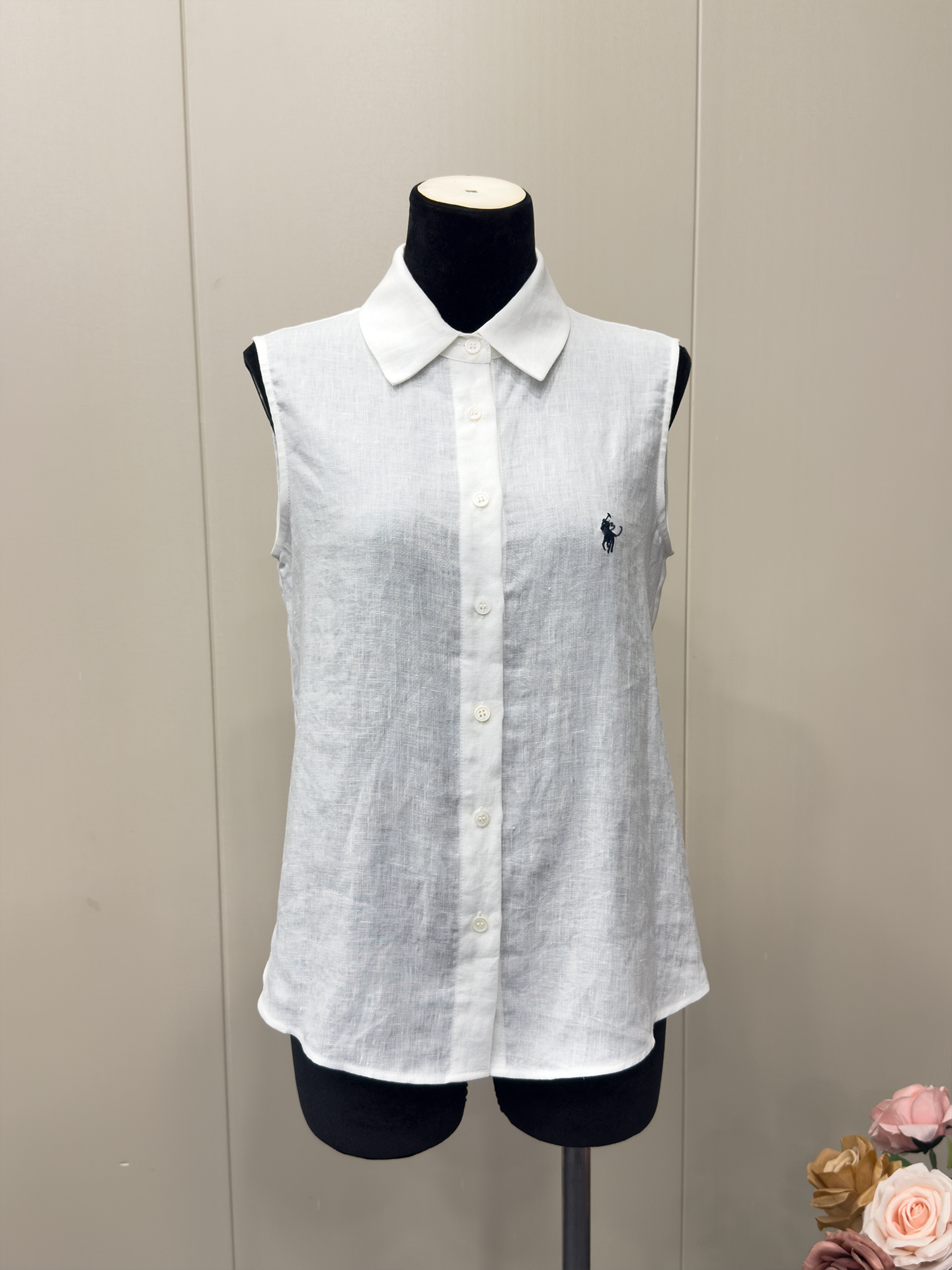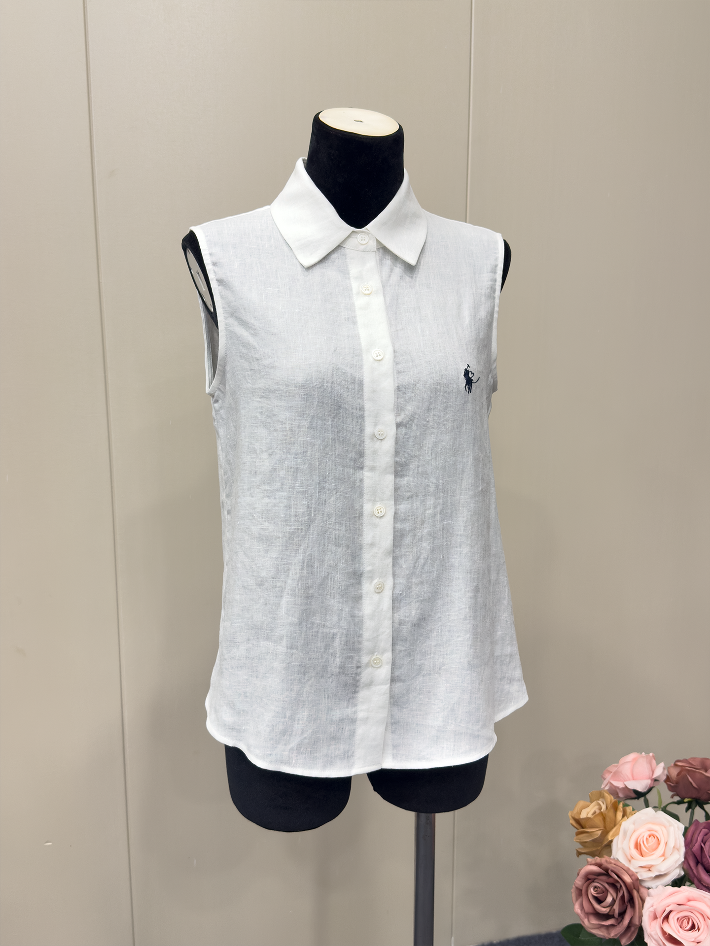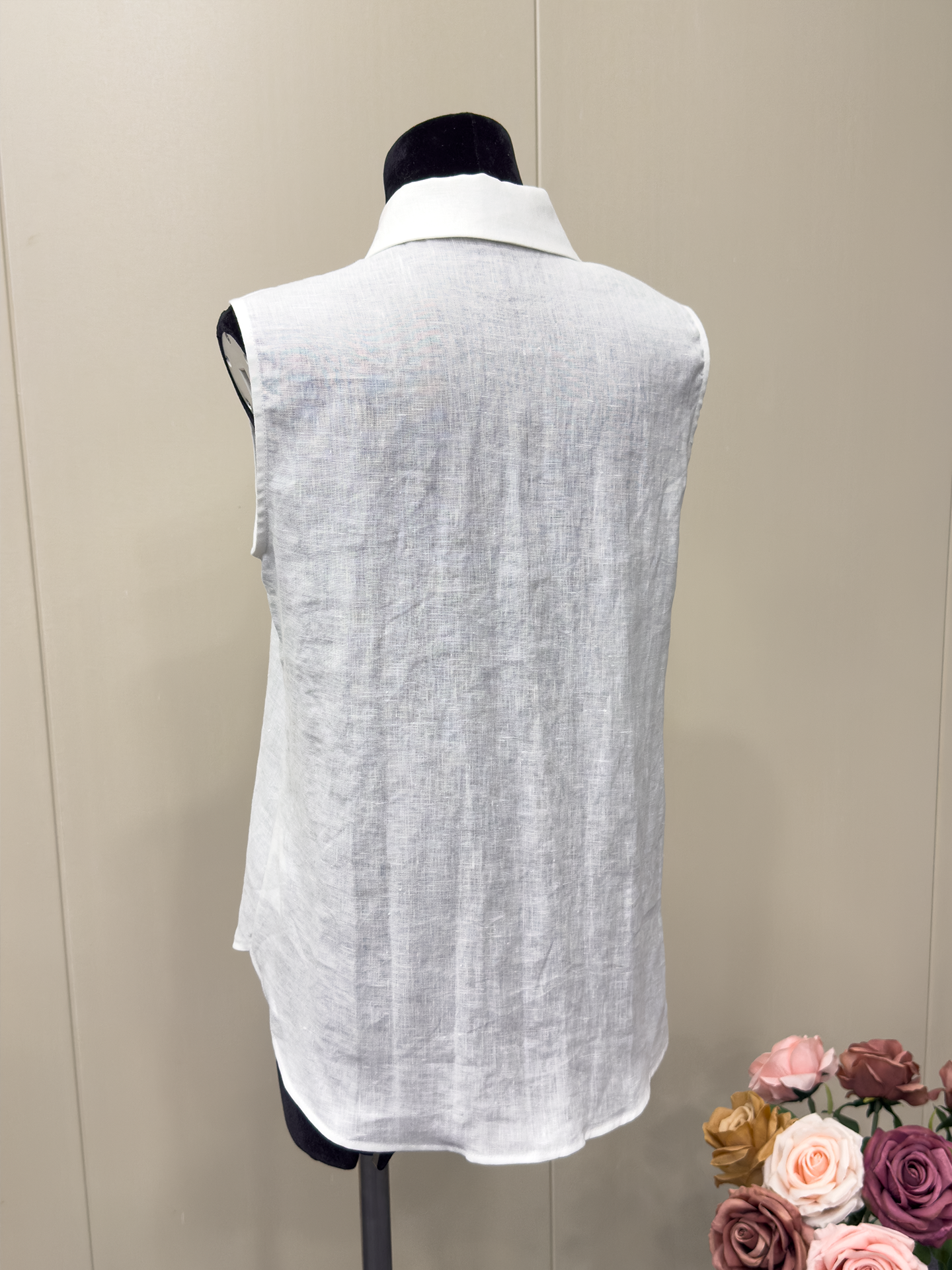 8027★ old money style simple polo collar sleeveless shirt women's 25 new casual versatile linen embroidered top