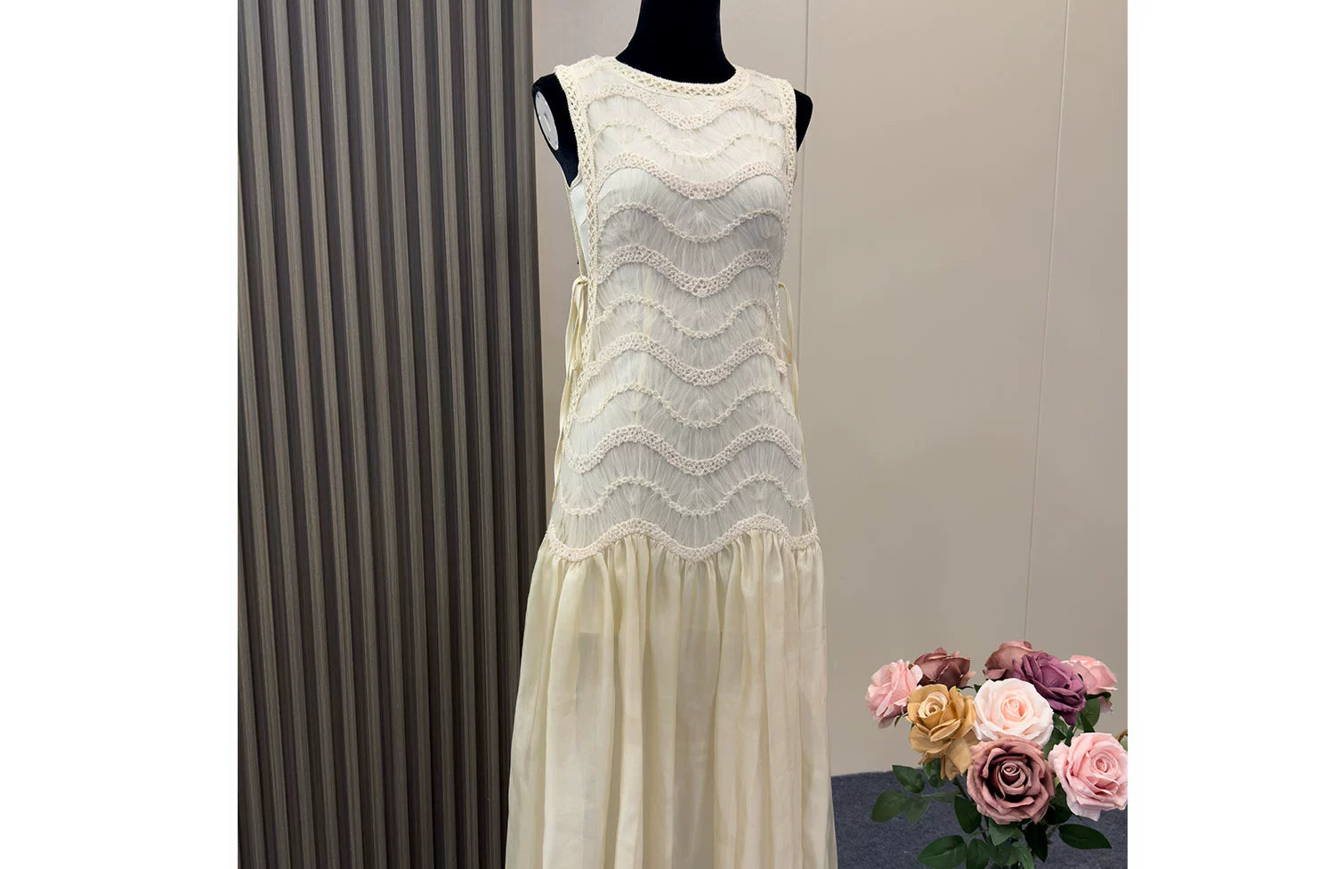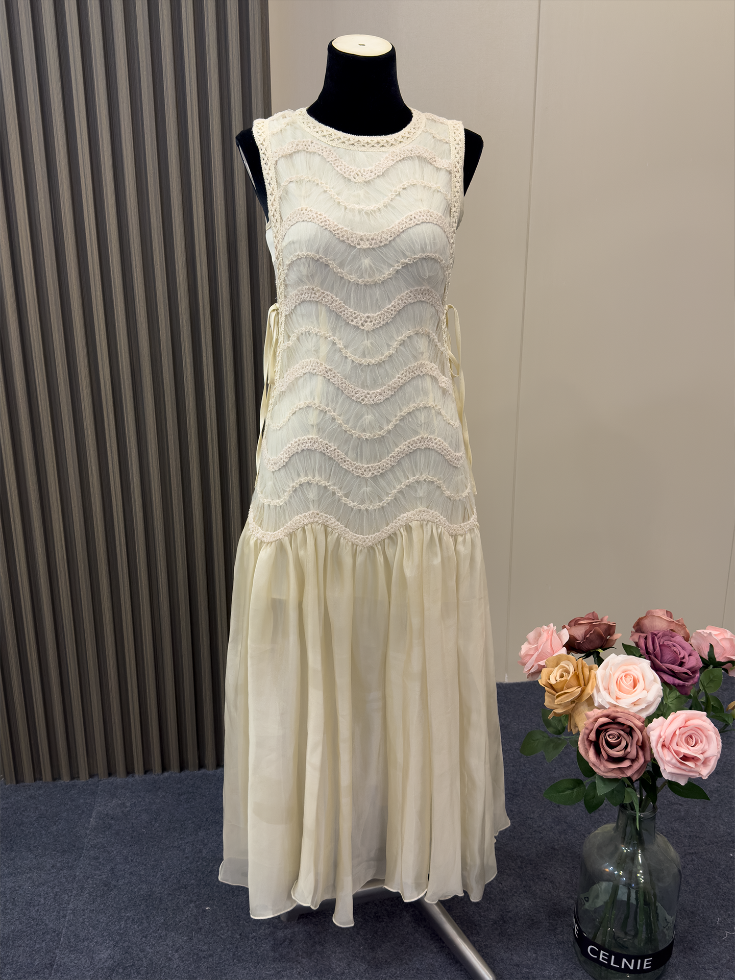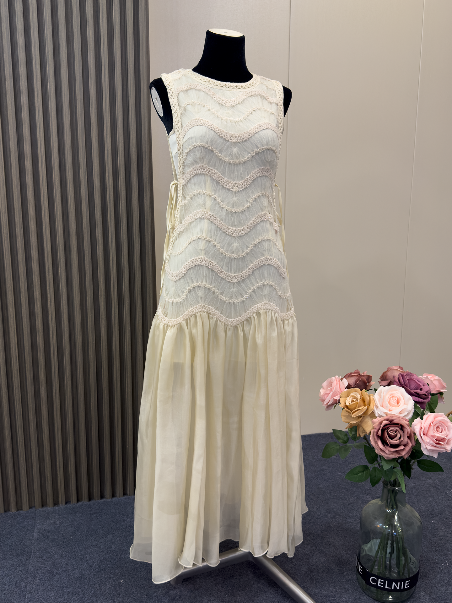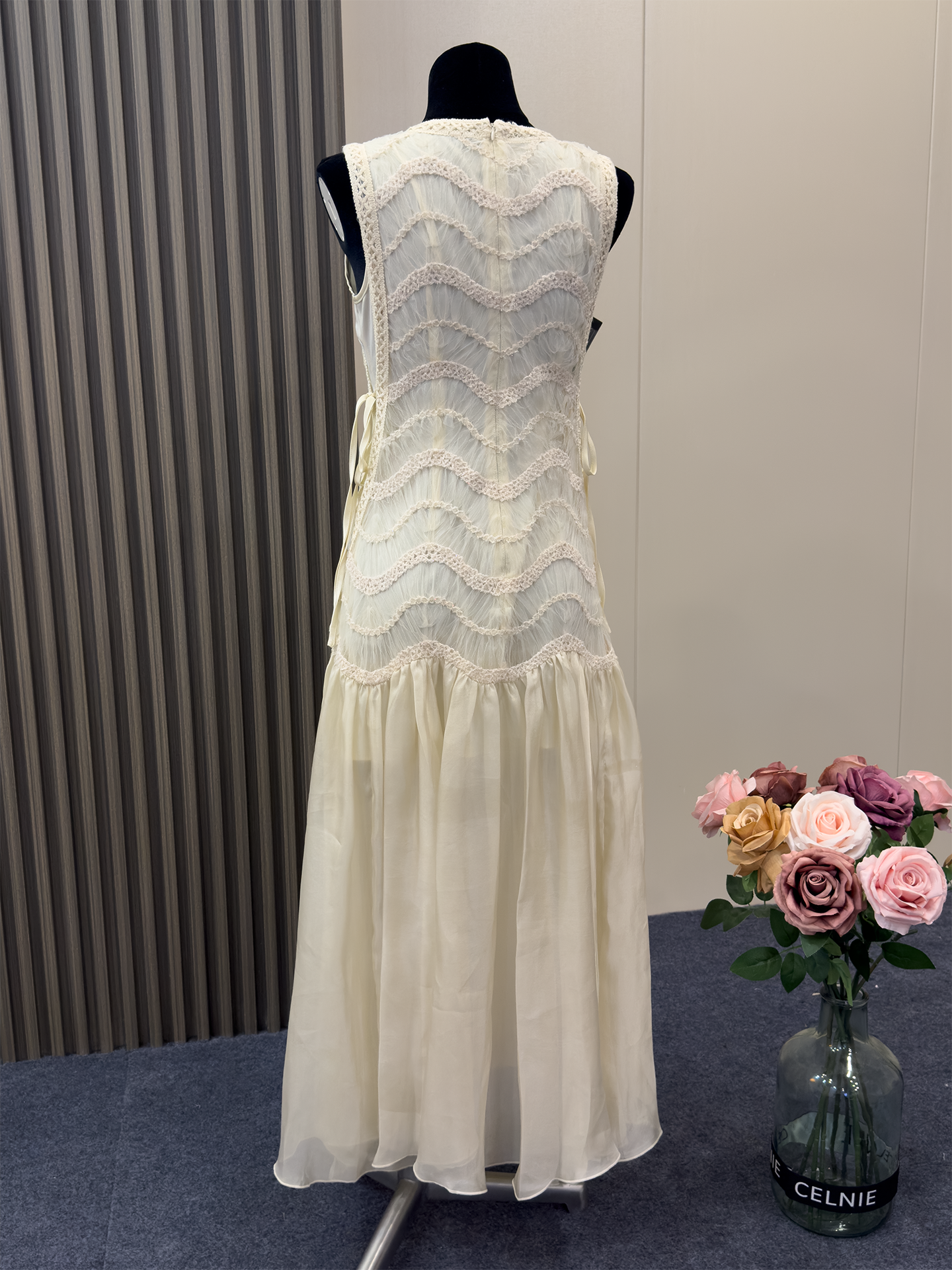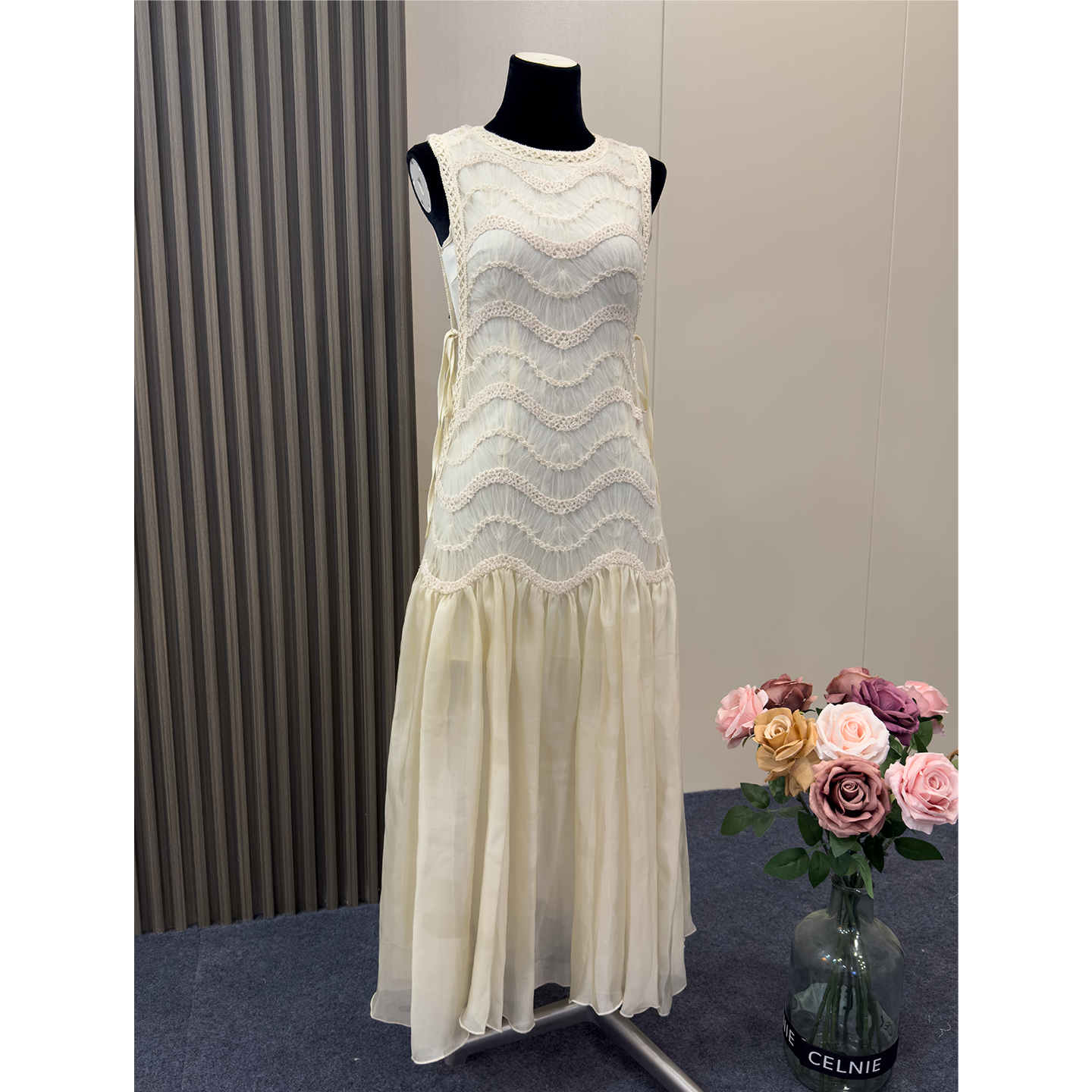 8028★ Casual vacation romantic quicksand skirt high-end lace fairy skirt pearlescent sleeveless dress woman