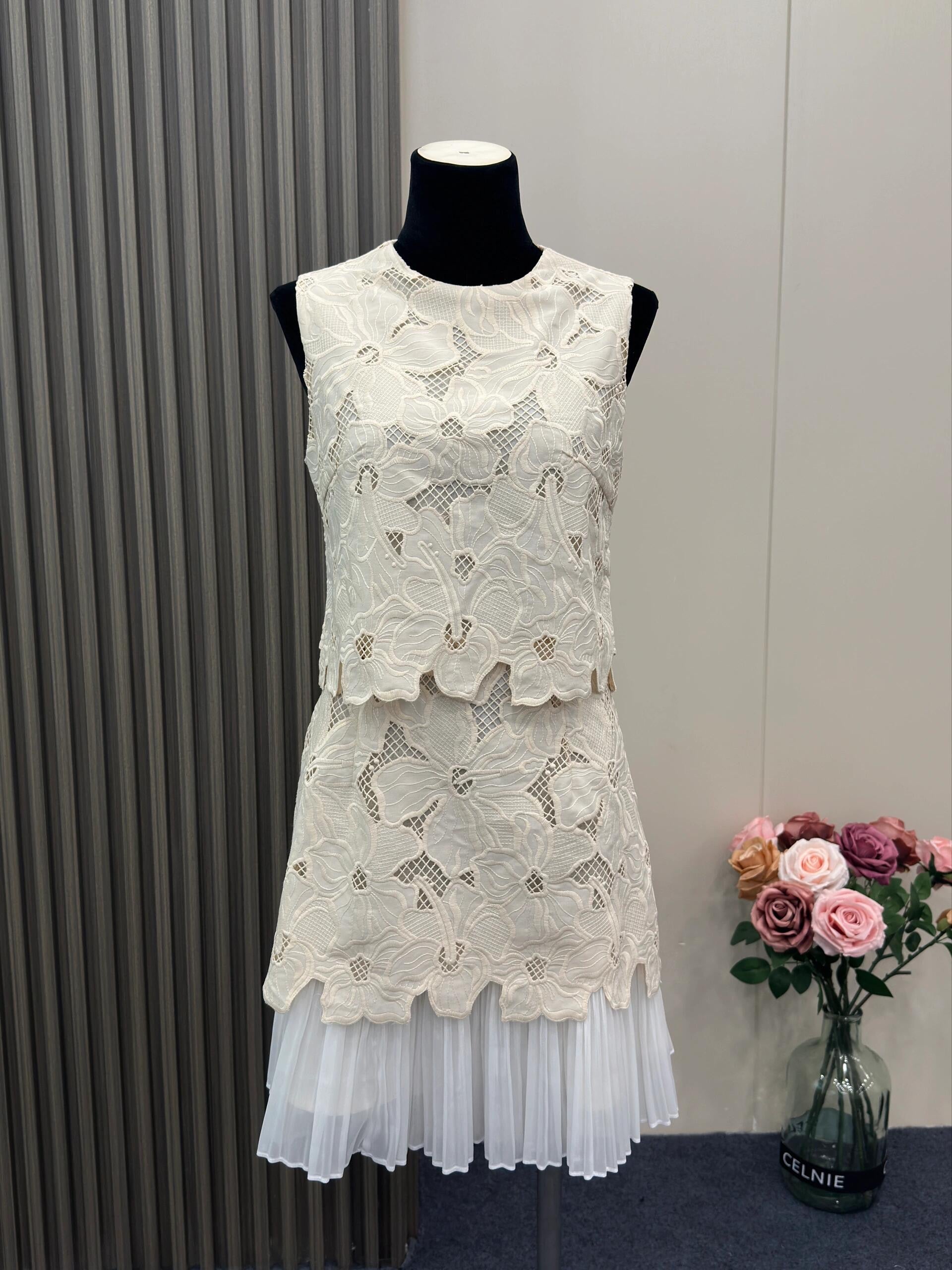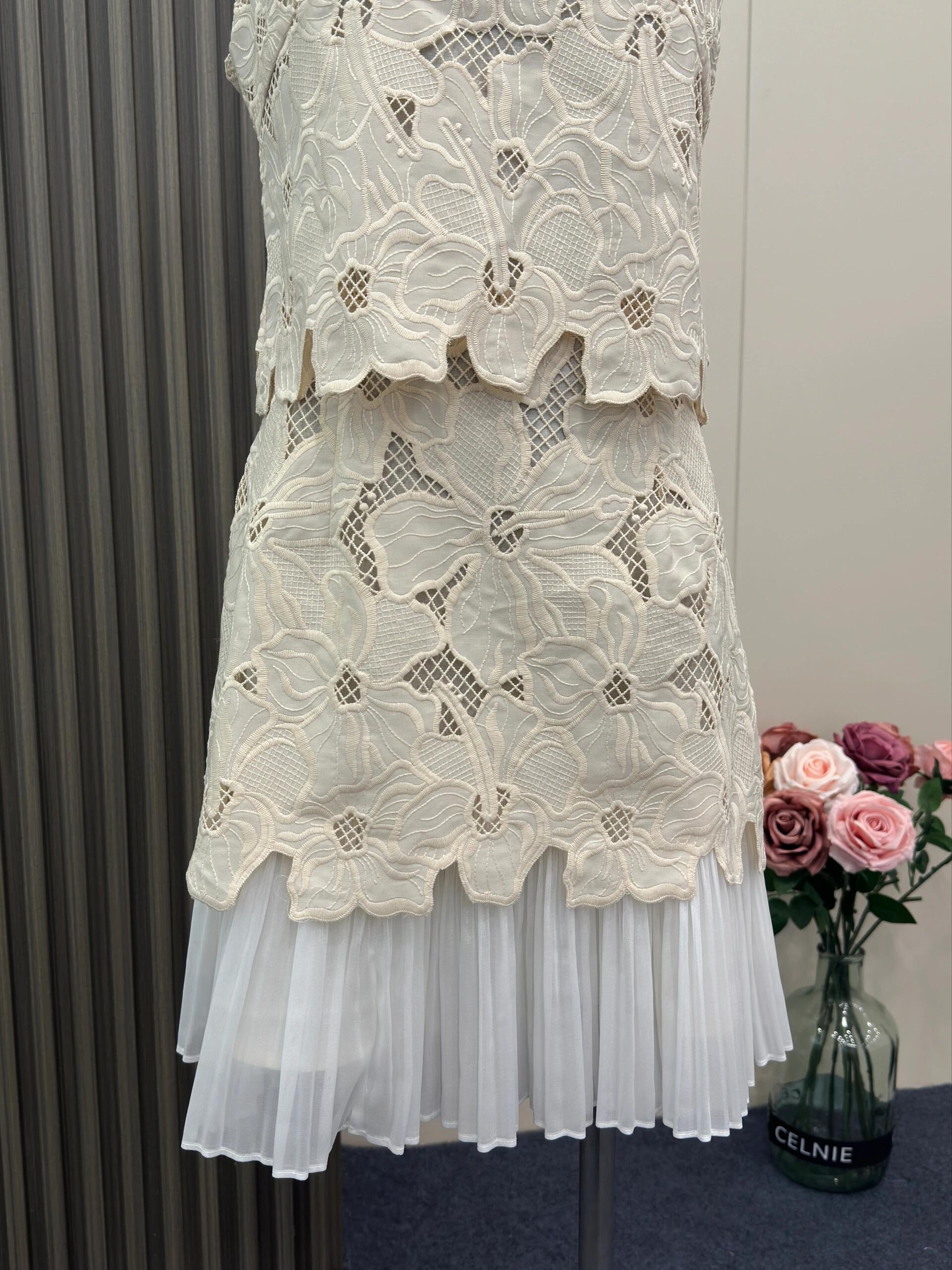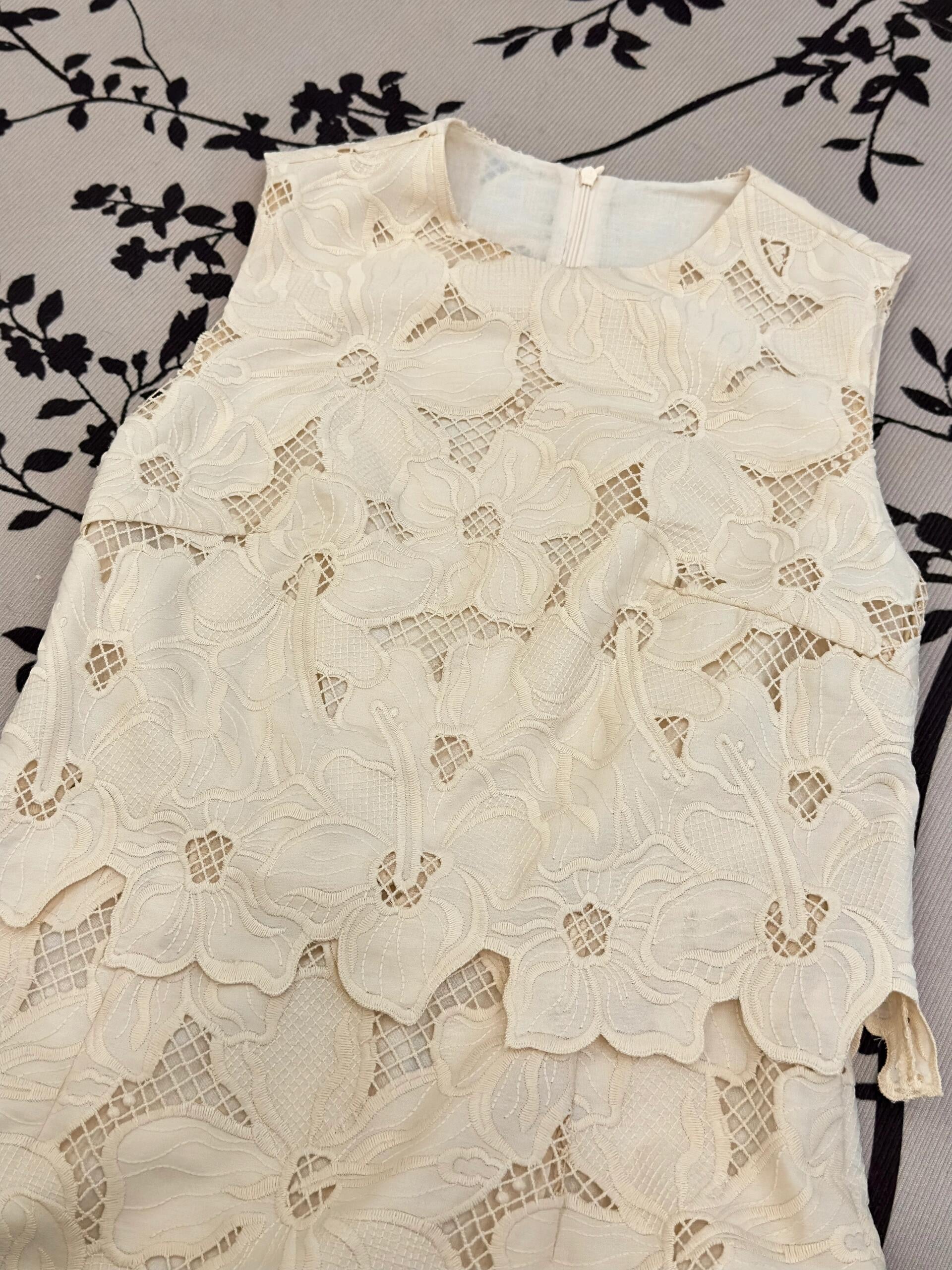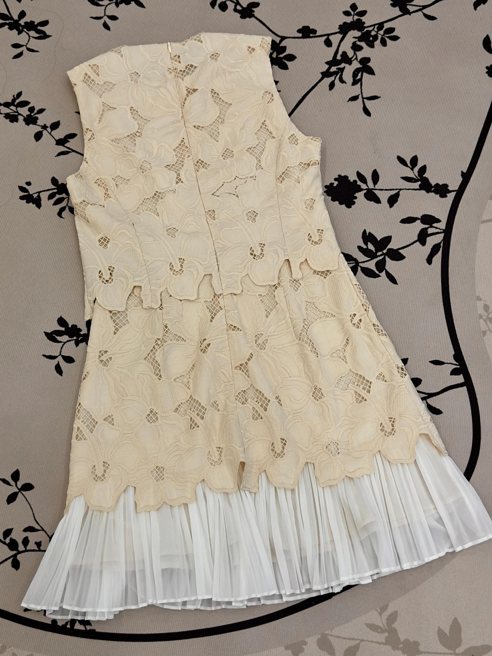 8031★ French high-end embroidery hollow splicing sleeveless dress women's summer design temperament short skirt