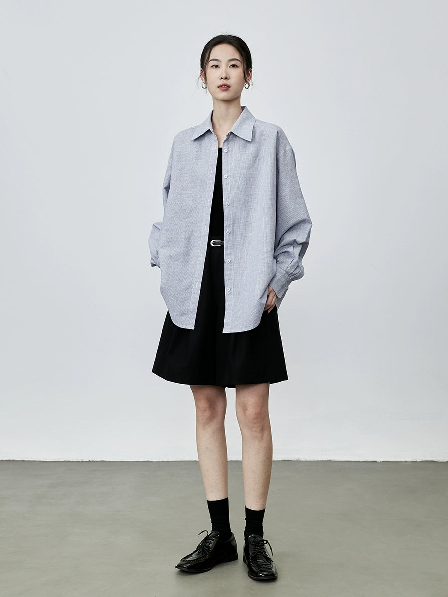 CAREMIND Mint Mambo Wear Over Shirt Breathable Linen Textured Long Sleeve Textured Top